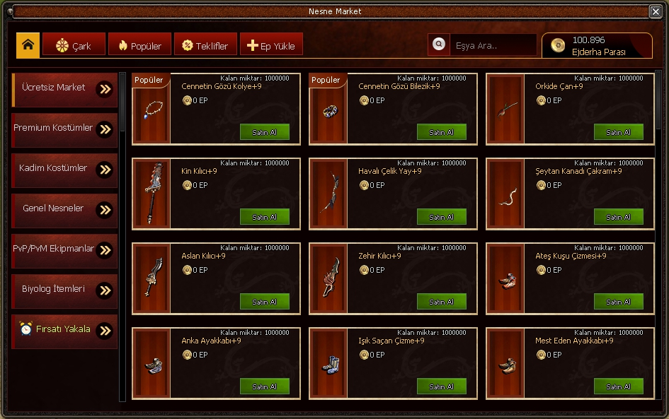 Nesne Market’te tüm oyunculara ücretsiz, hazır efsunlu itemler sunulmaktadır.