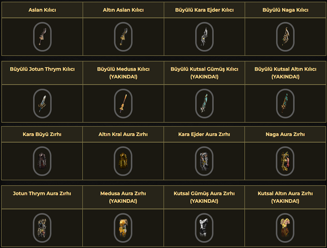 Serverimizde Aura Sistemi aktif! Oyuncular, ‘Satıcı Arındırma’ paneli üzerinden +0 aura üretebilir ve Büyülü Metal kullanarak +20’ye kadar yükseltebilir. Her seviye, karaktere katlanarak artan farm bonusları kazandırır.